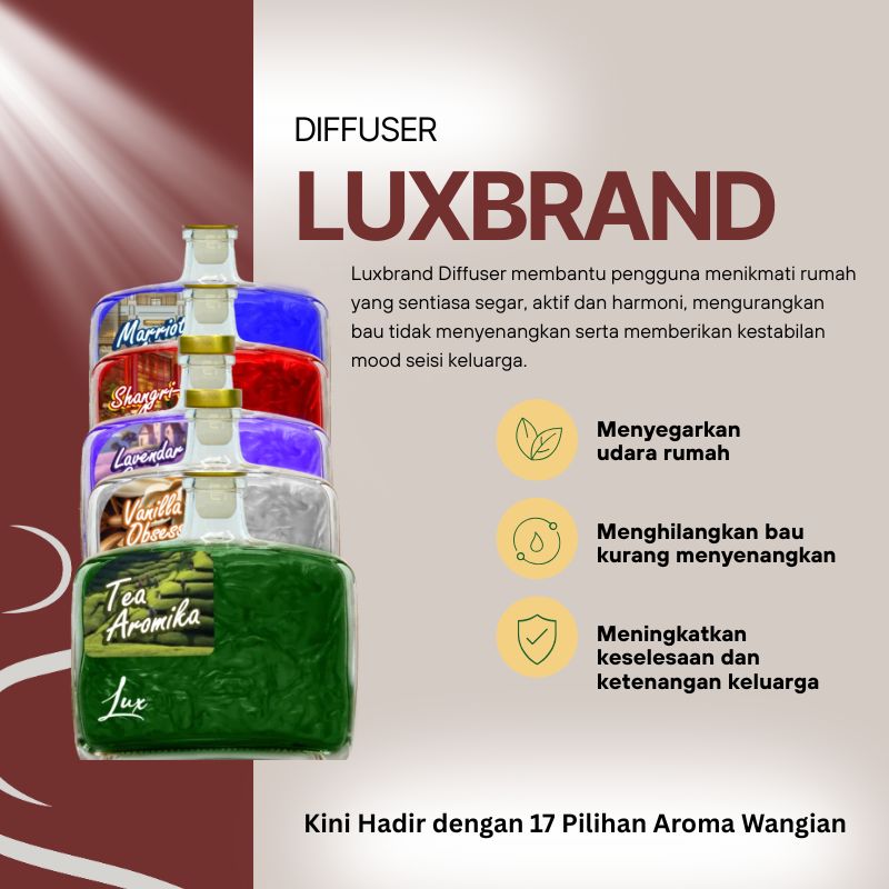 Luxbrand Diffuser Wangian Rumah Premium: Membantu Menyegarkan Udara Rumah, Menyokong Suasana Harmoni serta Mengurangkan Bau Tidak Menyenangkan di Setiap Ruang Rumah.