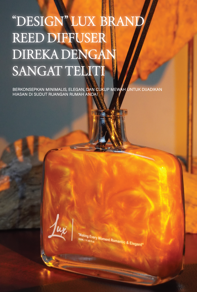 Lux Reed Diffuser 350ML l Wangian Rumah Berkualiti : 17 Pilihan Wangian Yang Membantu Menyegarkan Udara Rumah, Menyokong Suasana Harmoni serta Mengurangkan Bau Tidak Menyenangkan di Setiap Ruang Rumah.